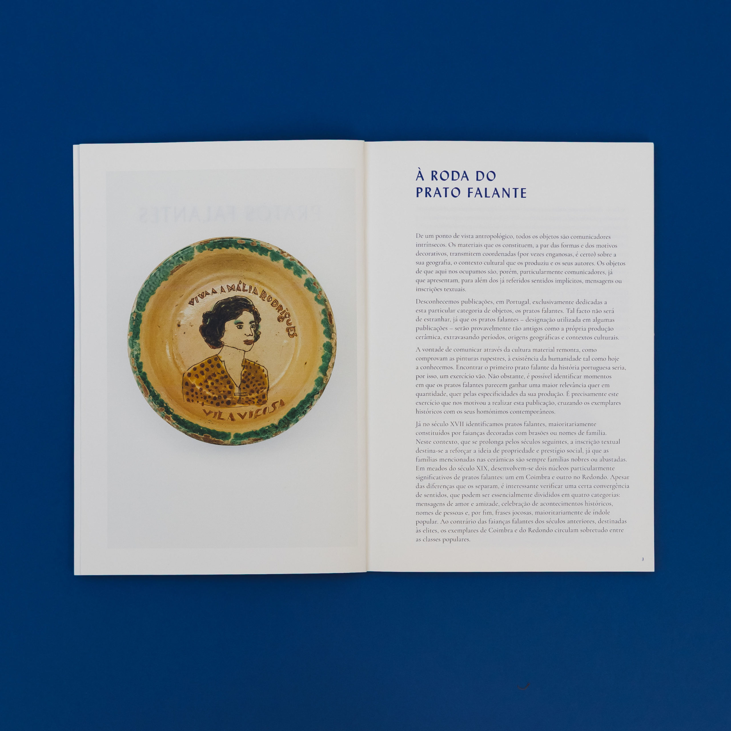 A vontade de comunicar através da cultura material remonta, como comprovam as pinturas rupestres, à existência da humanidade tal como hoje a conhecemos. Encontrar o primeiro prato falante da história portuguesa seria, por isso, um exercício vão. Não obstante, é possível identificar momentos em que os pratos falantes parecem ganhar maior relevância quer em quantidade, quer pelas especificidades da sua produção. É precisamente este exercício que nos motivou a realizar esta publicação, cruzando os exemplares históricos com os seus homónimos contemporâneos.”