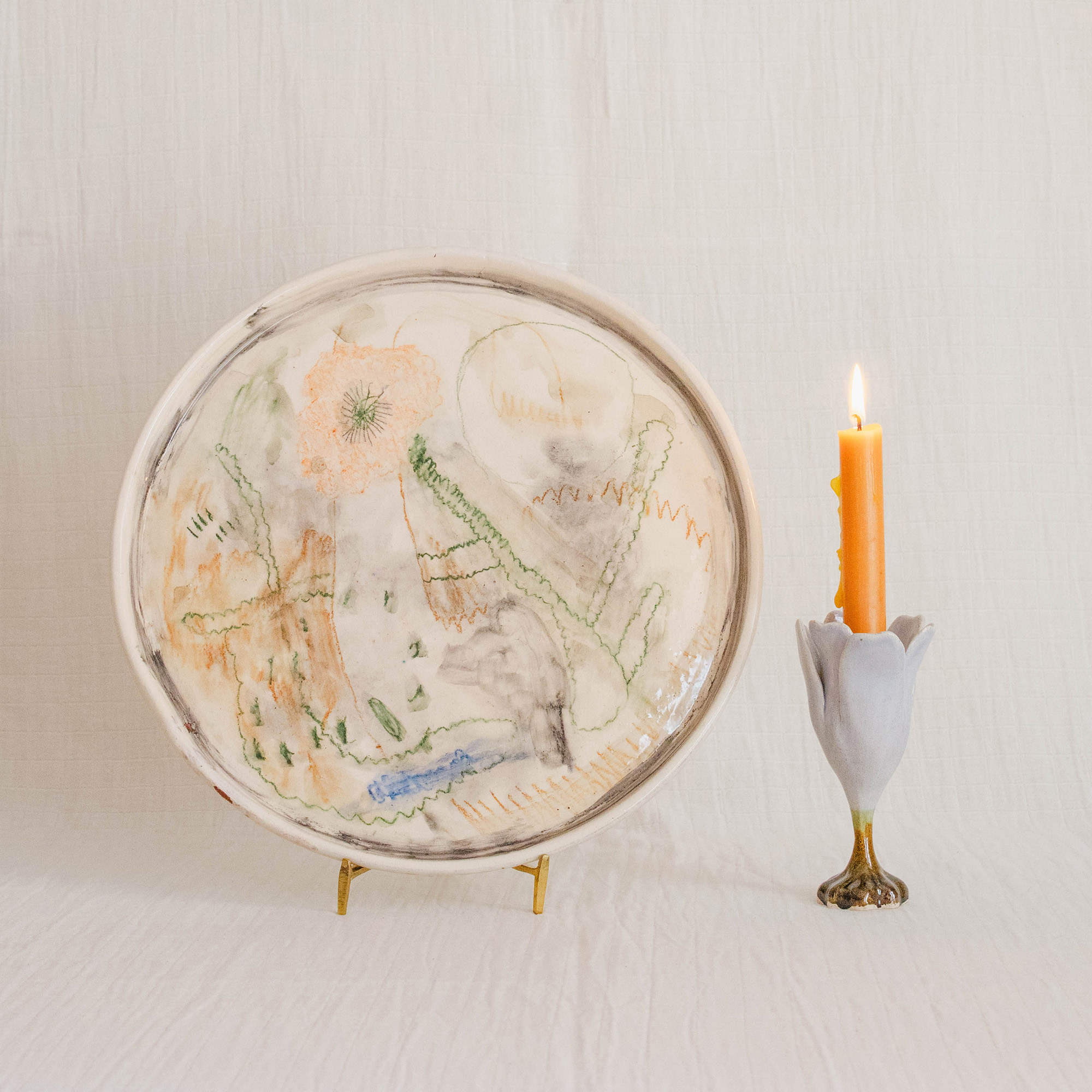Fruteiras de cerâmica comissionadas por Felipa Almeida na técnica da verguinha que consiste em produzir a peça com rolinhos de barro entrelaçados, que depois são vidrados.
