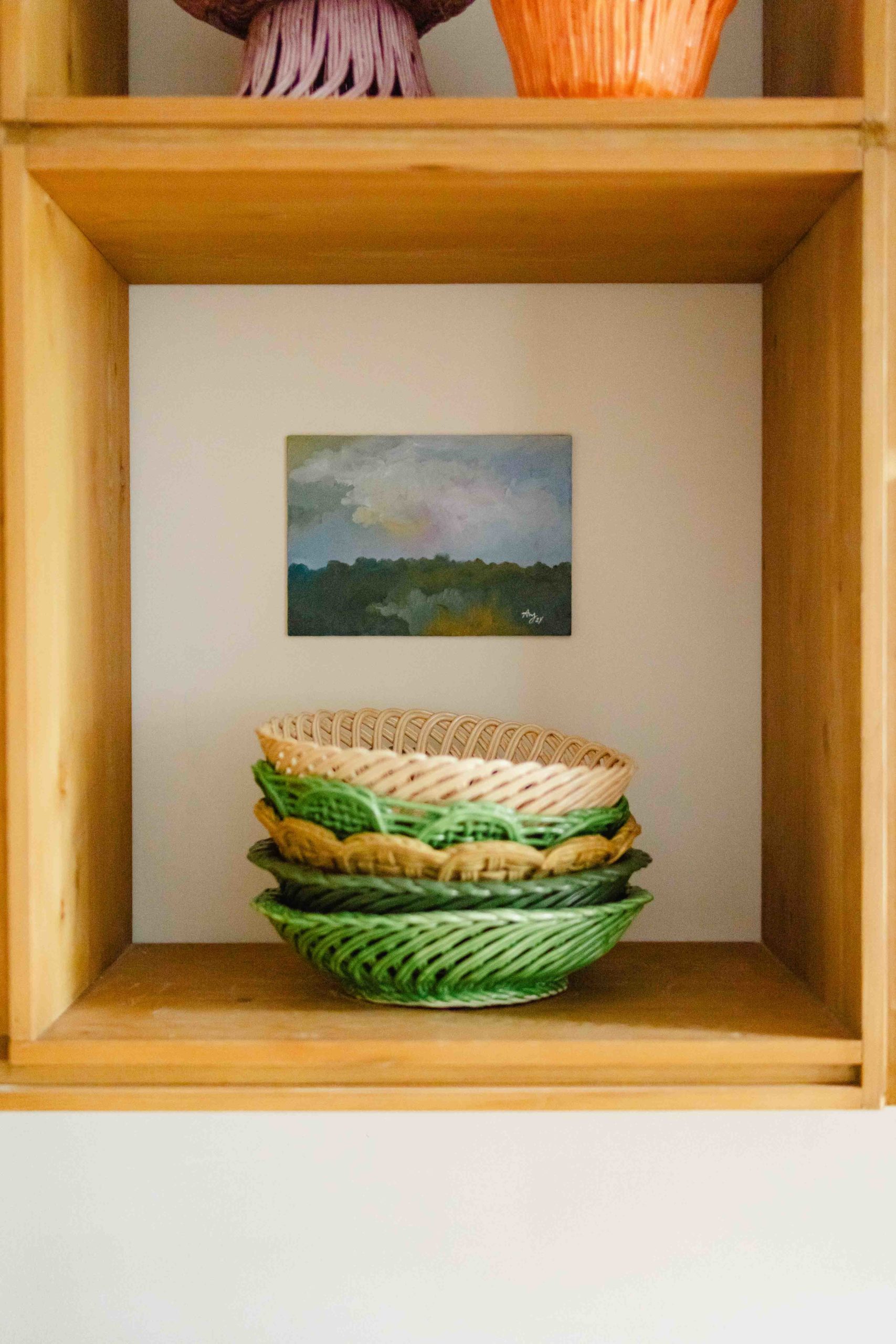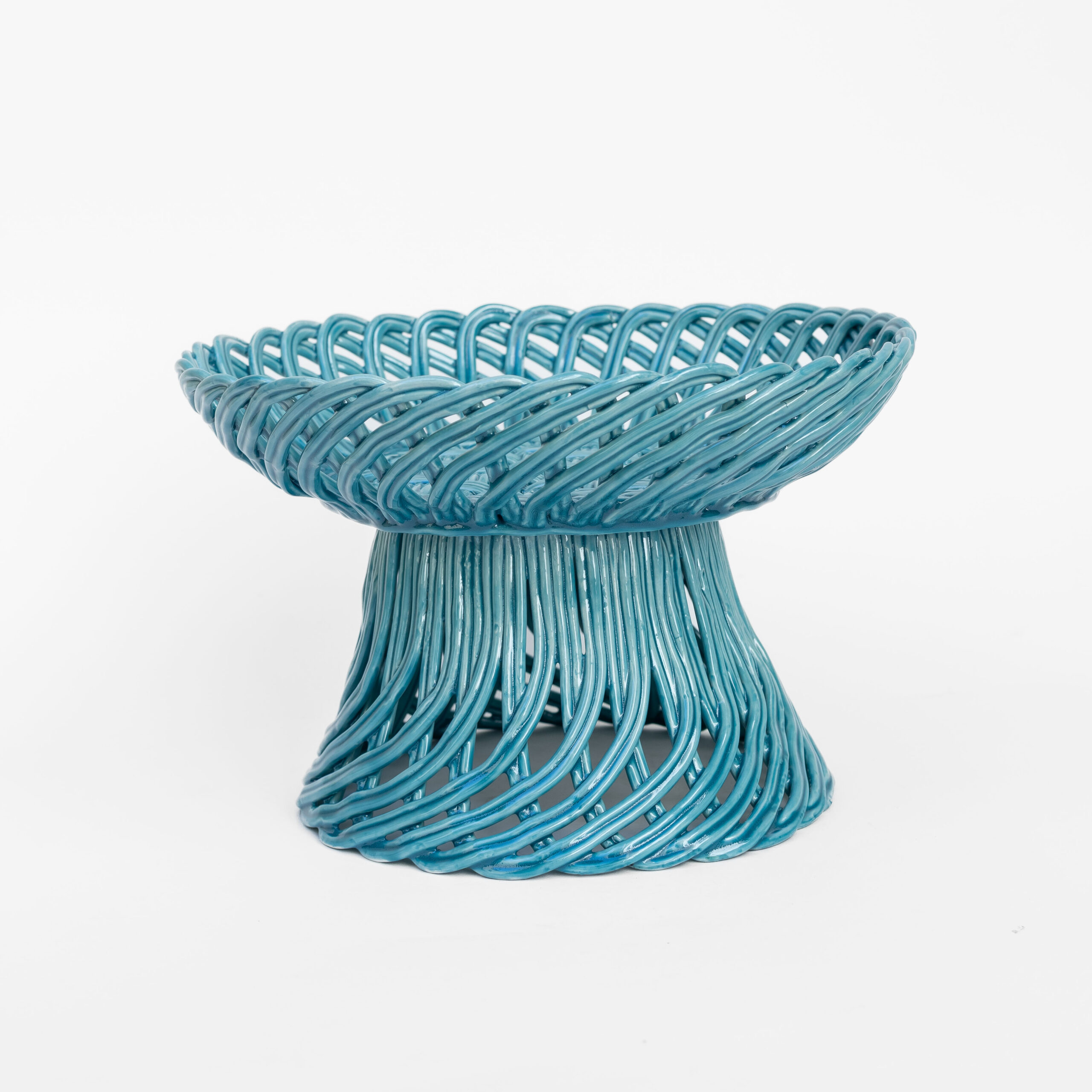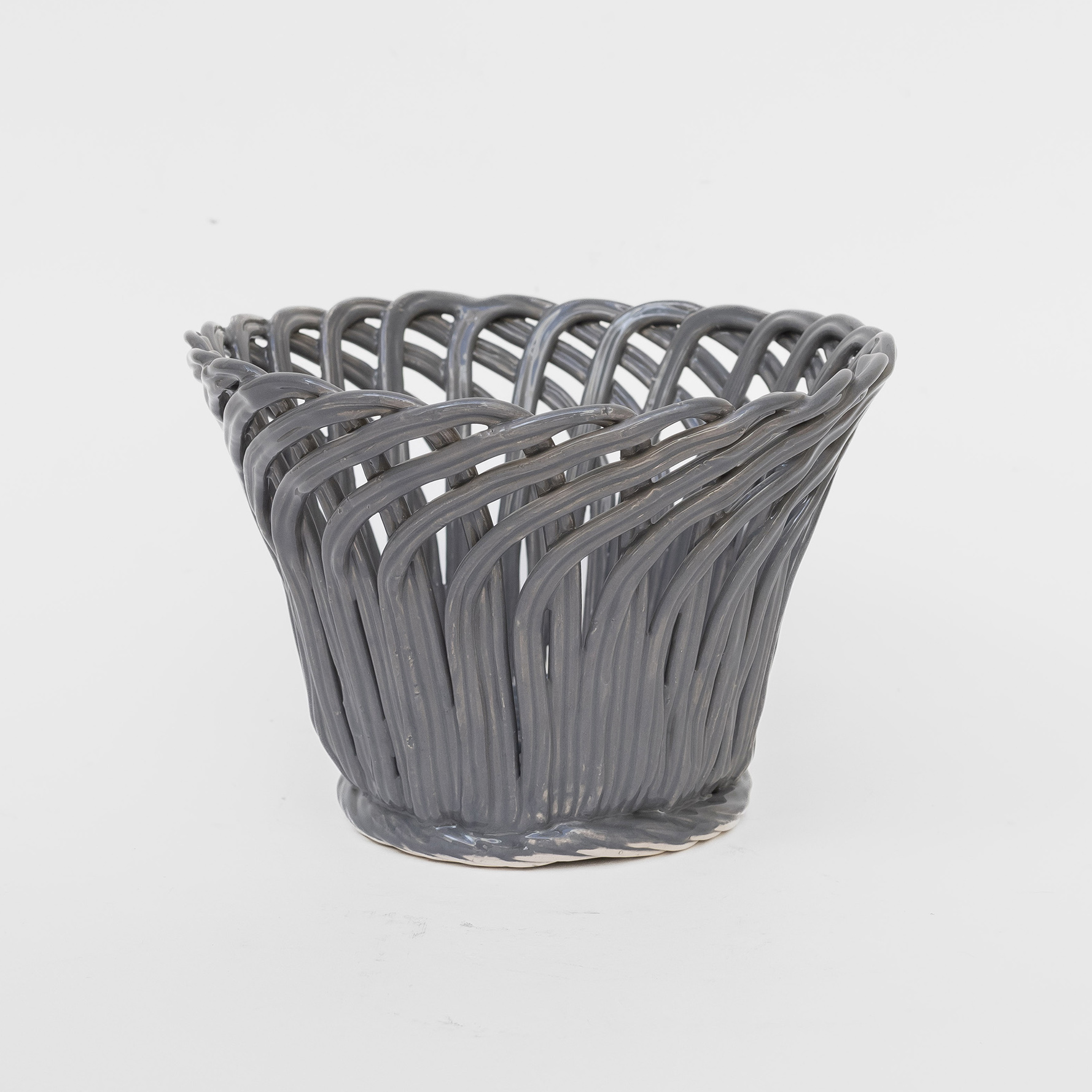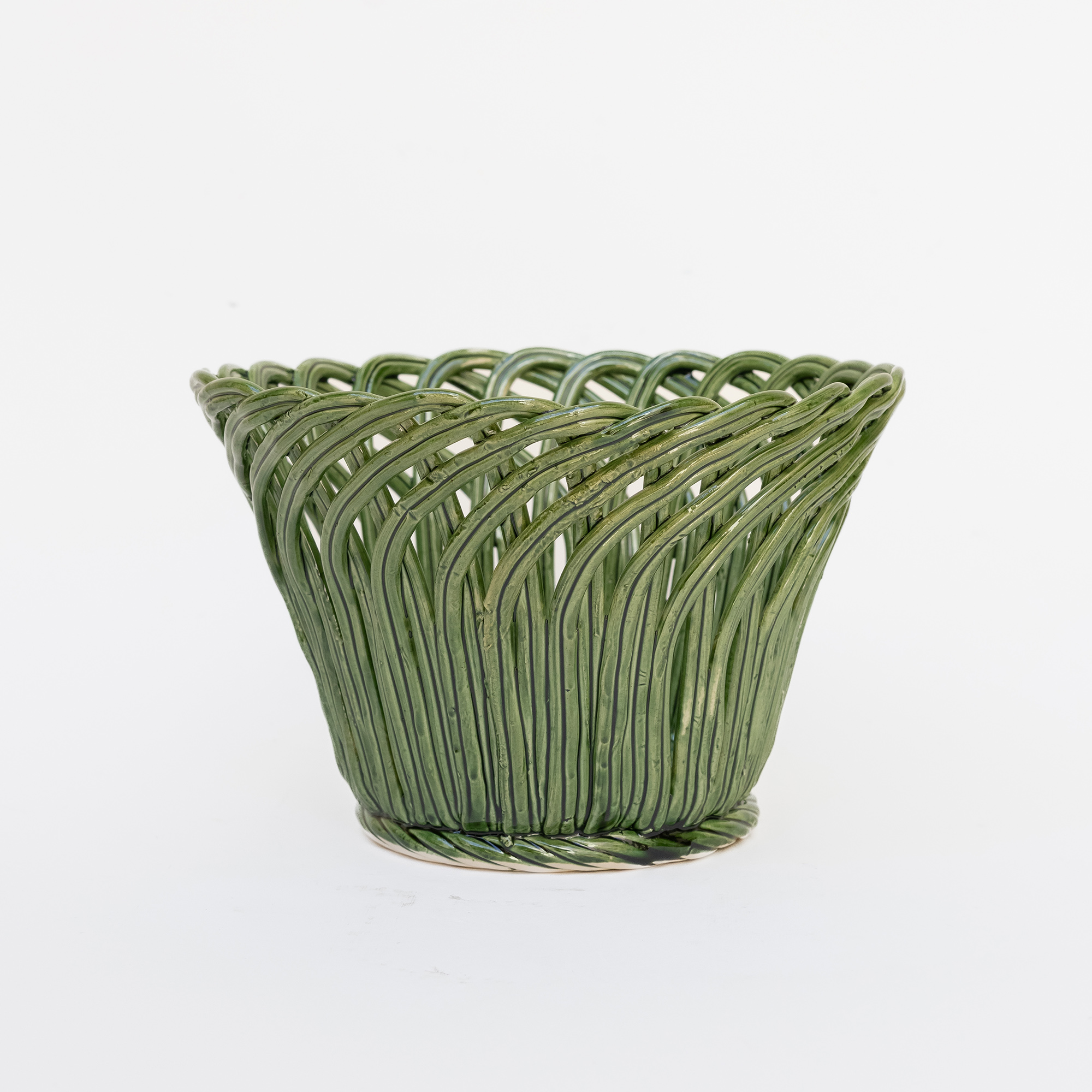Cestas de cerâmica comissionadas por Felipa Almeida na técnica da verguinha que consiste em produzir a peça com rolinhos de barro entrelaçados, que depois são vidrados.