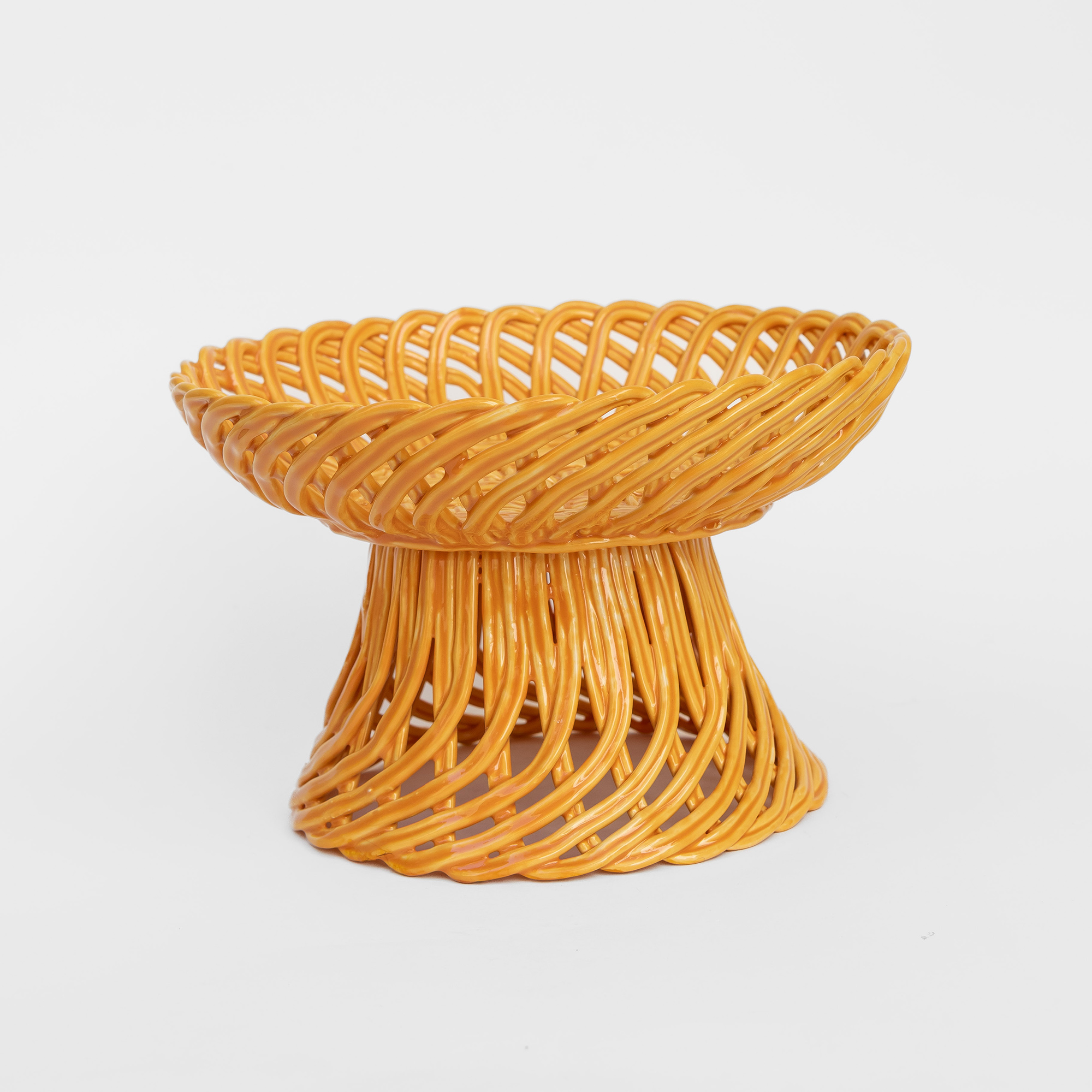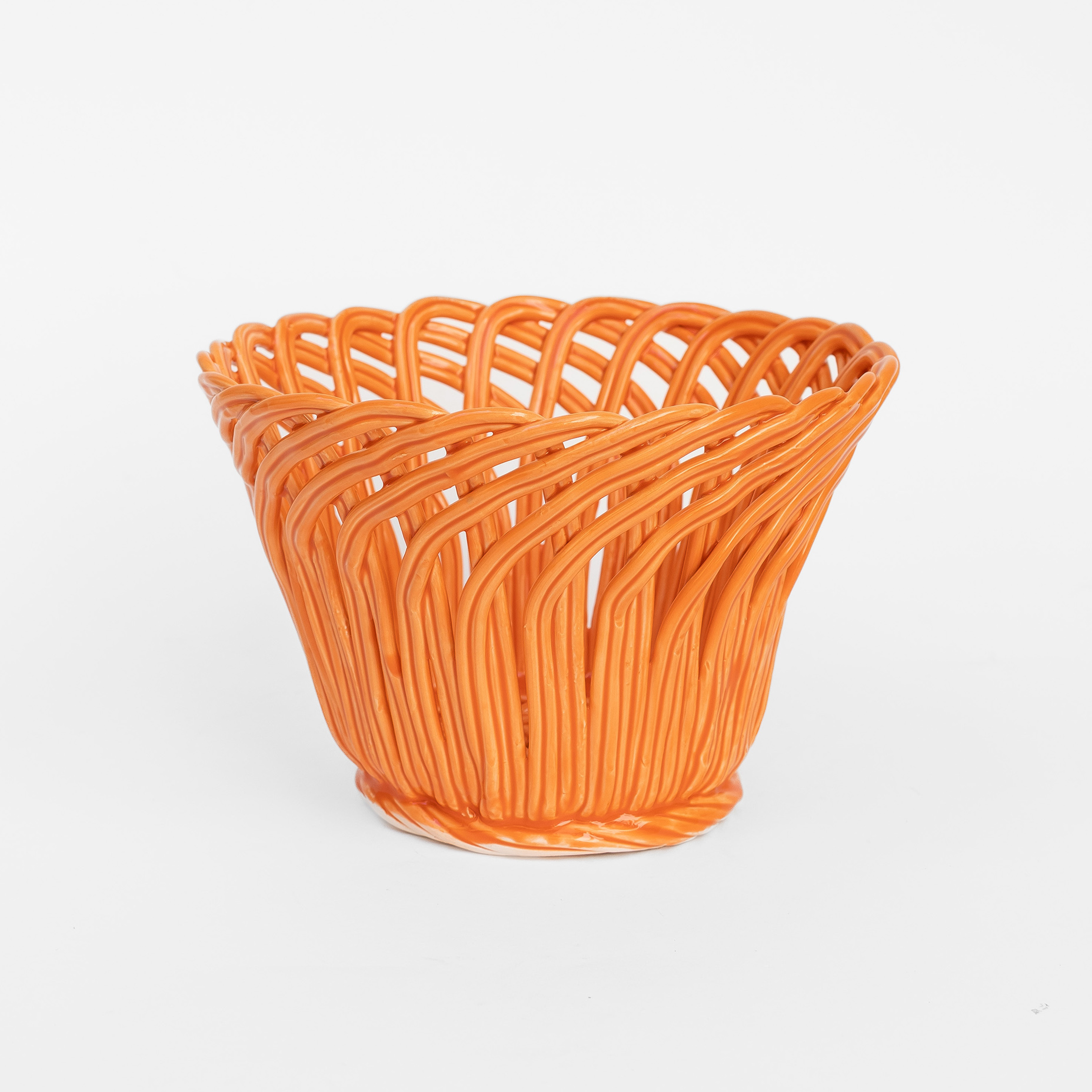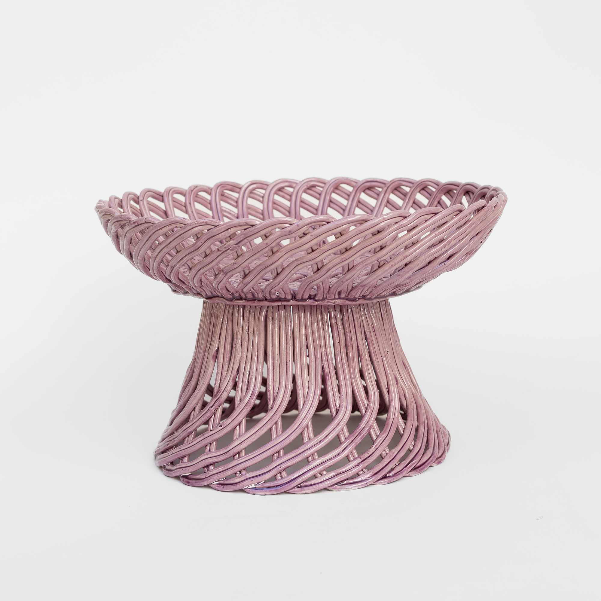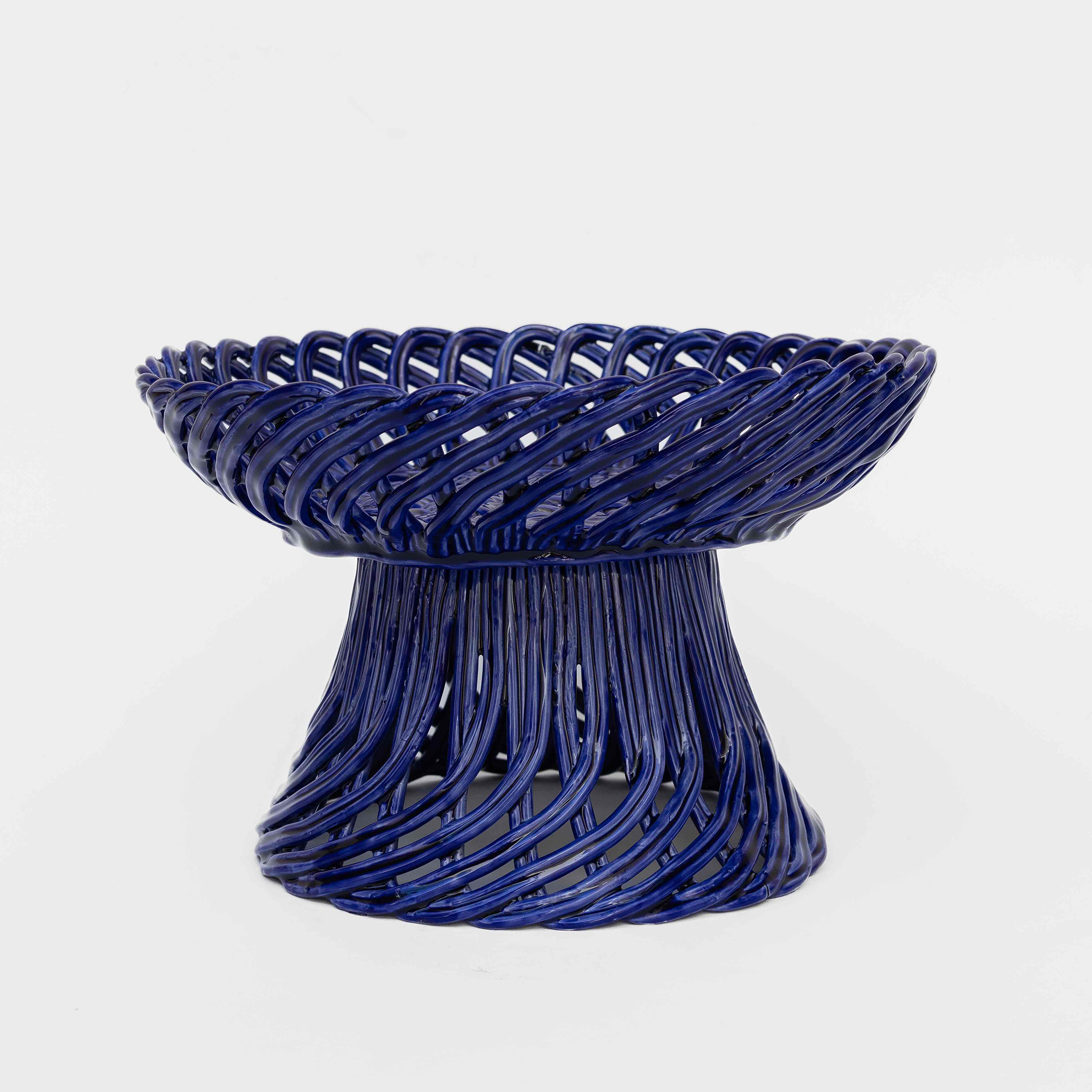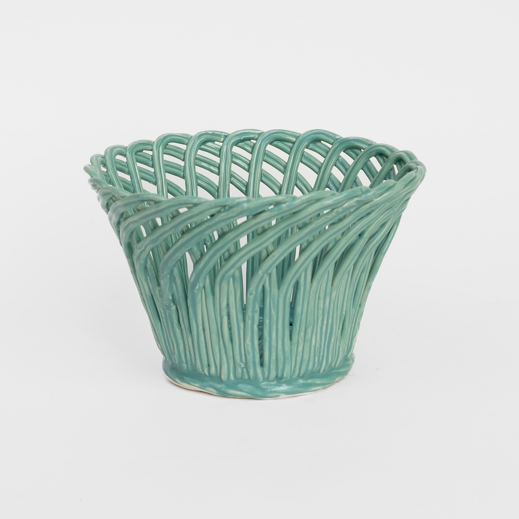 Cestas de cerâmica comissionadas por Felipa Almeida na técnica da verguinha que consiste em produzir a peça com rolinhos de barro entrelaçados, que depois são vidrados.