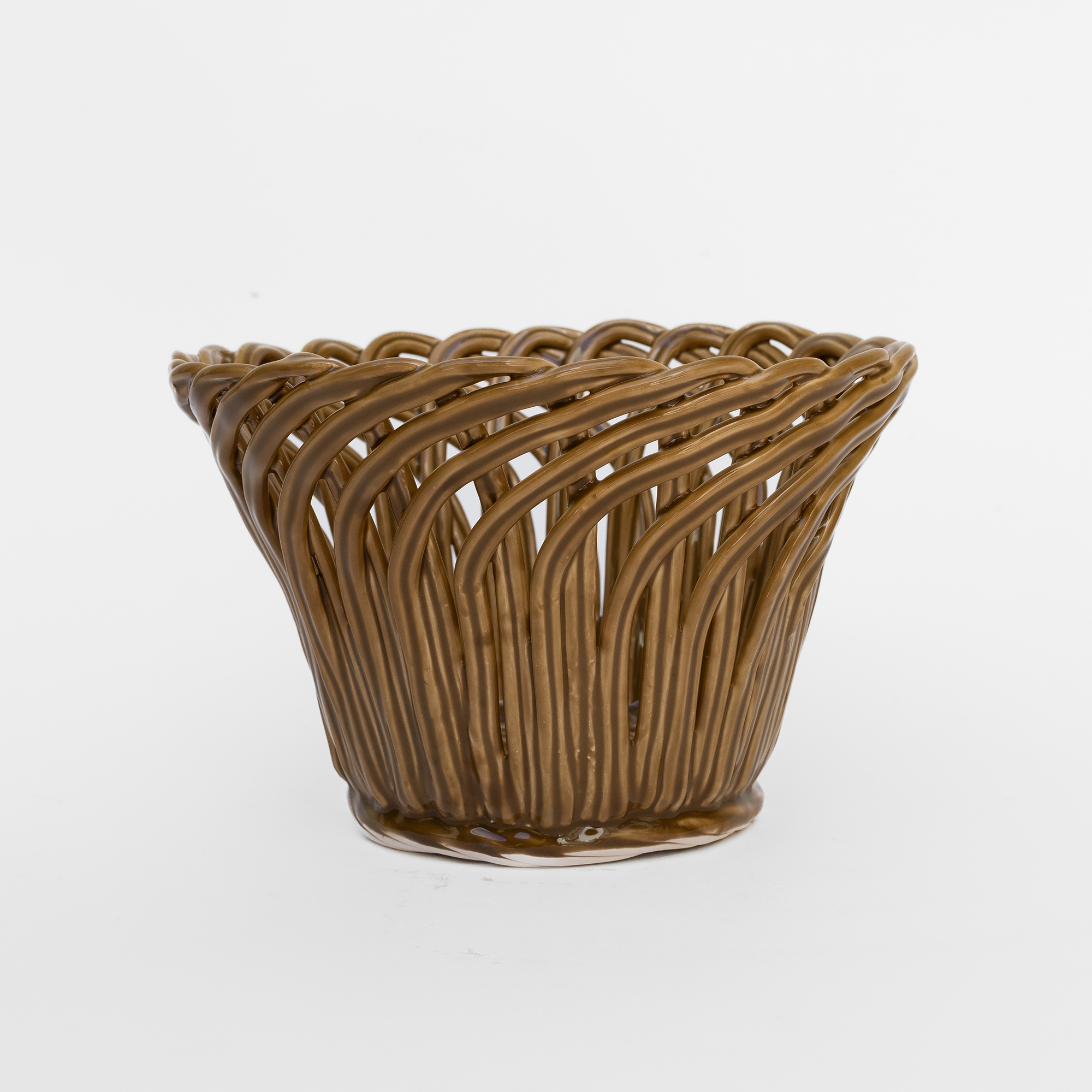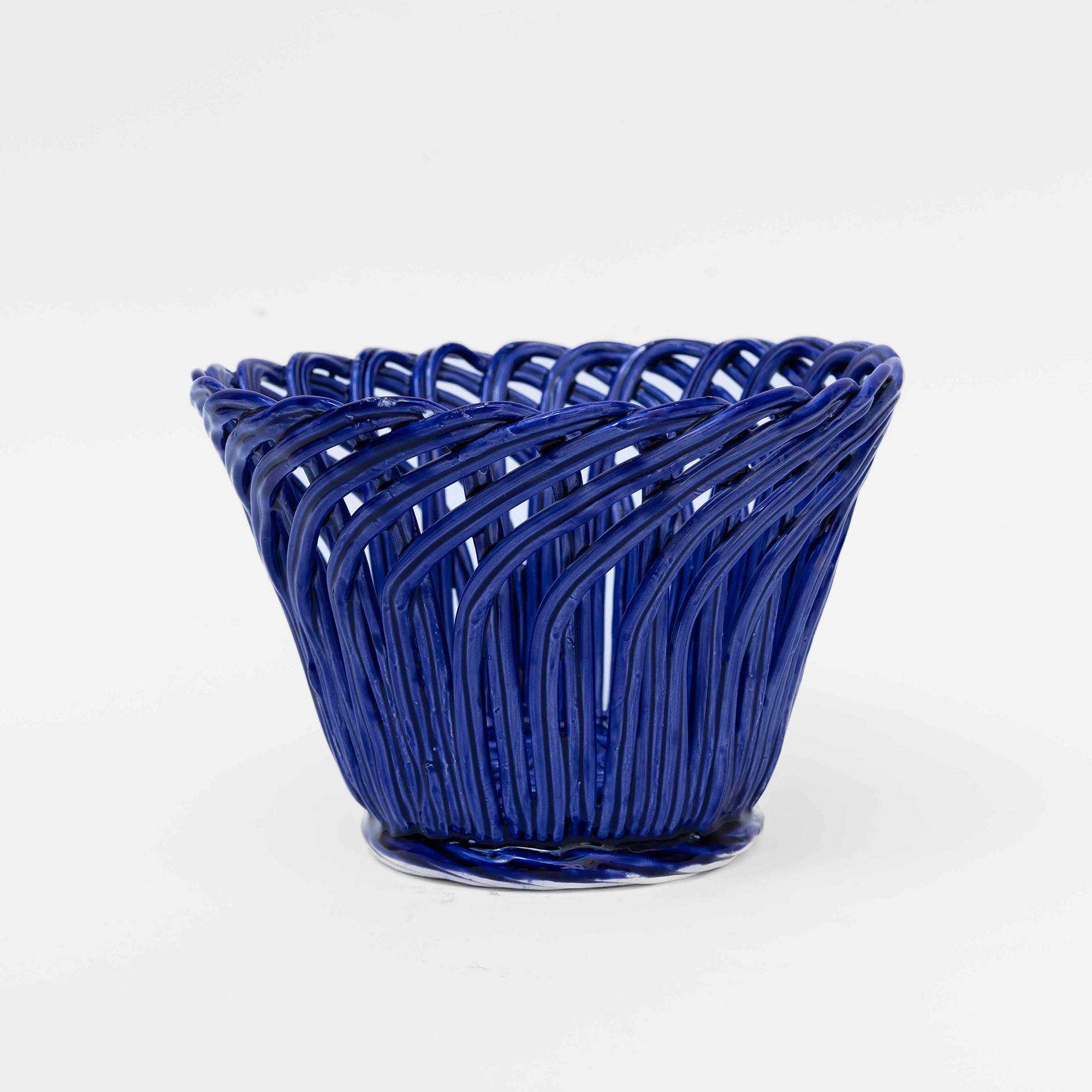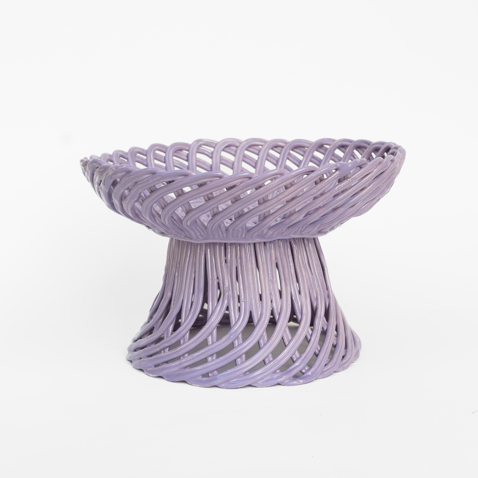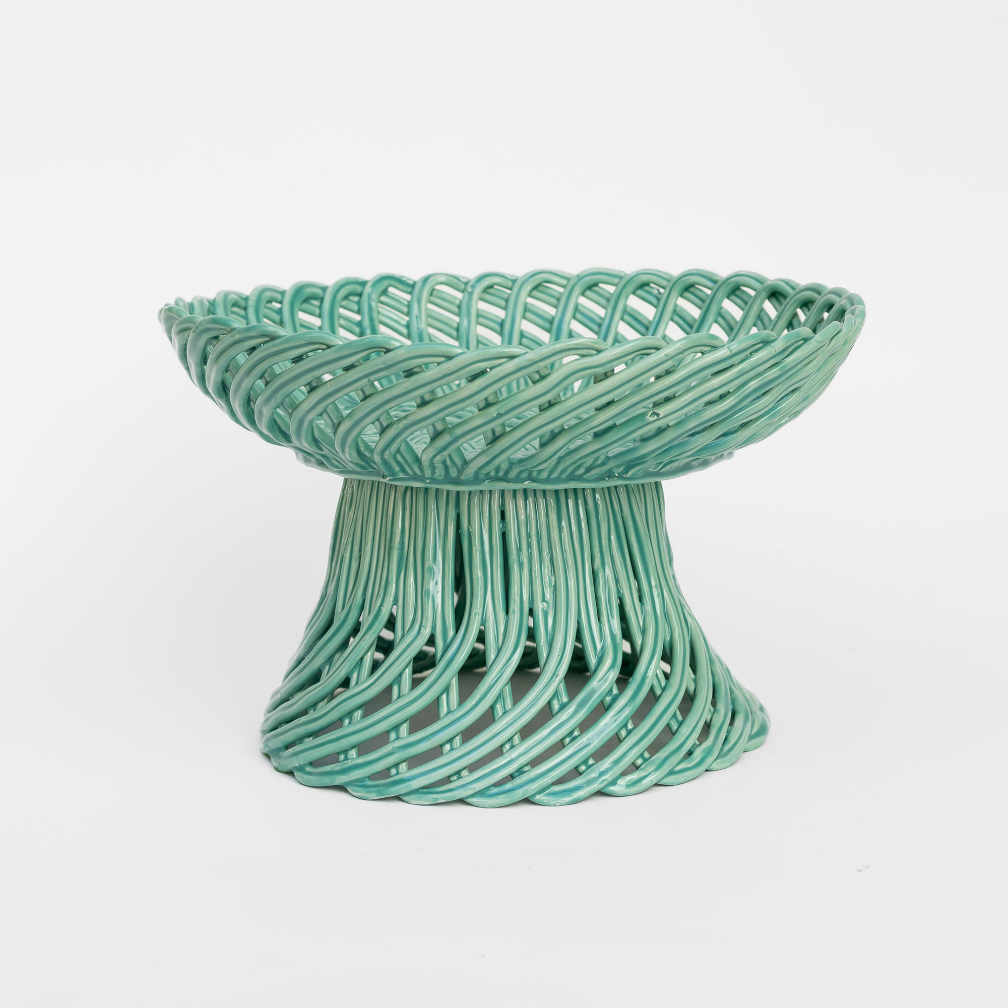 Cestas de cerâmica comissionadas por Felipa Almeida na técnica da verguinha que consiste em produzir a peça com rolinhos de barro entrelaçados, que depois são vidrados.