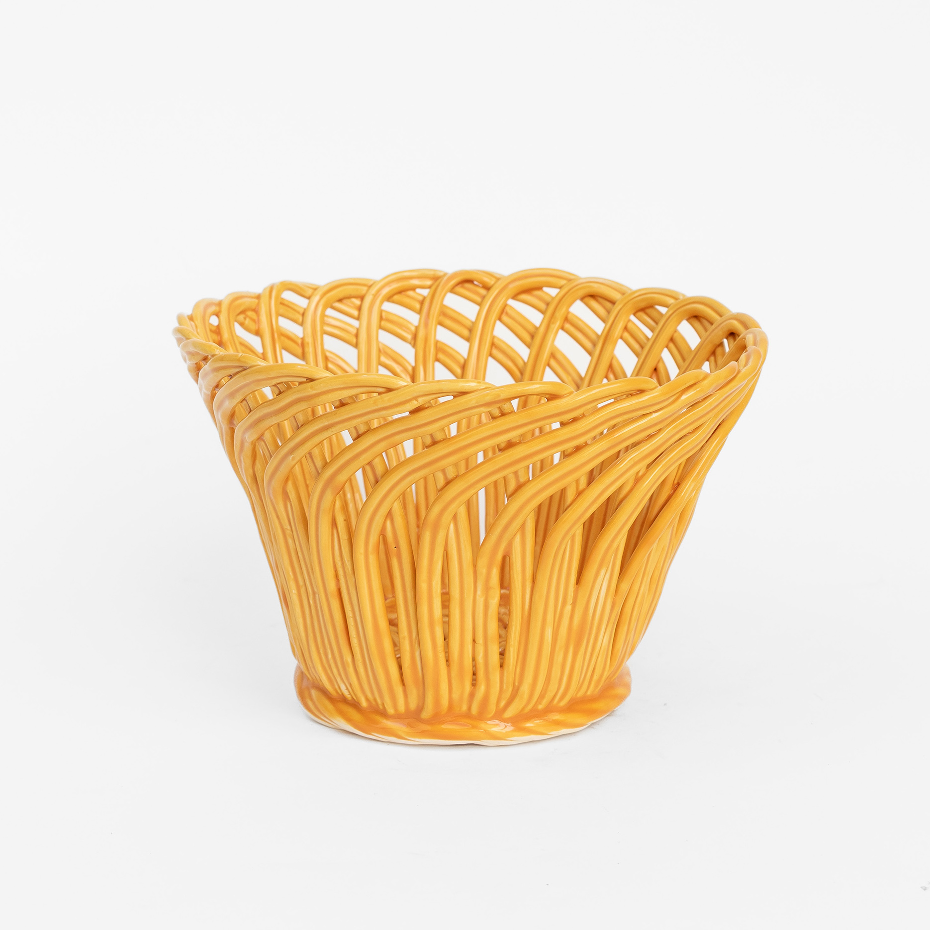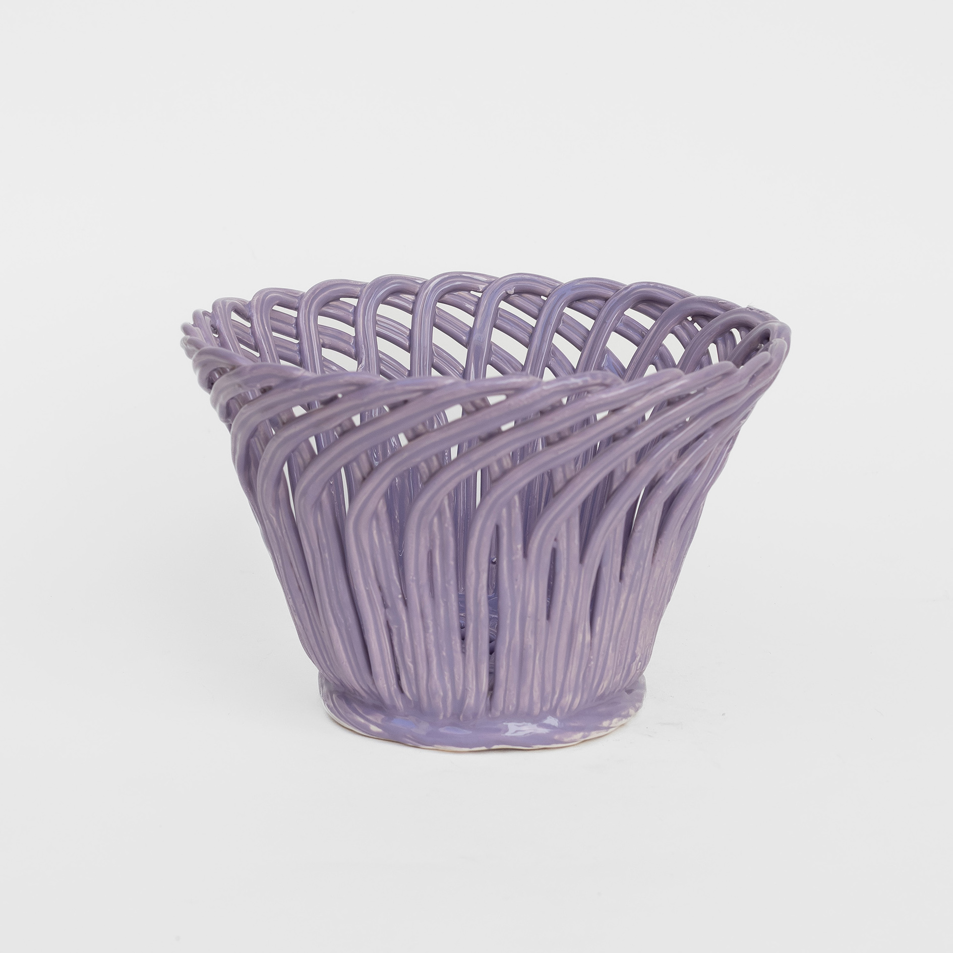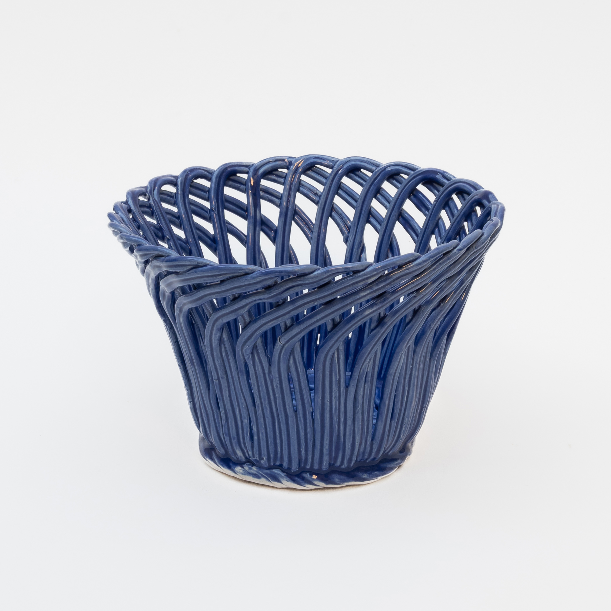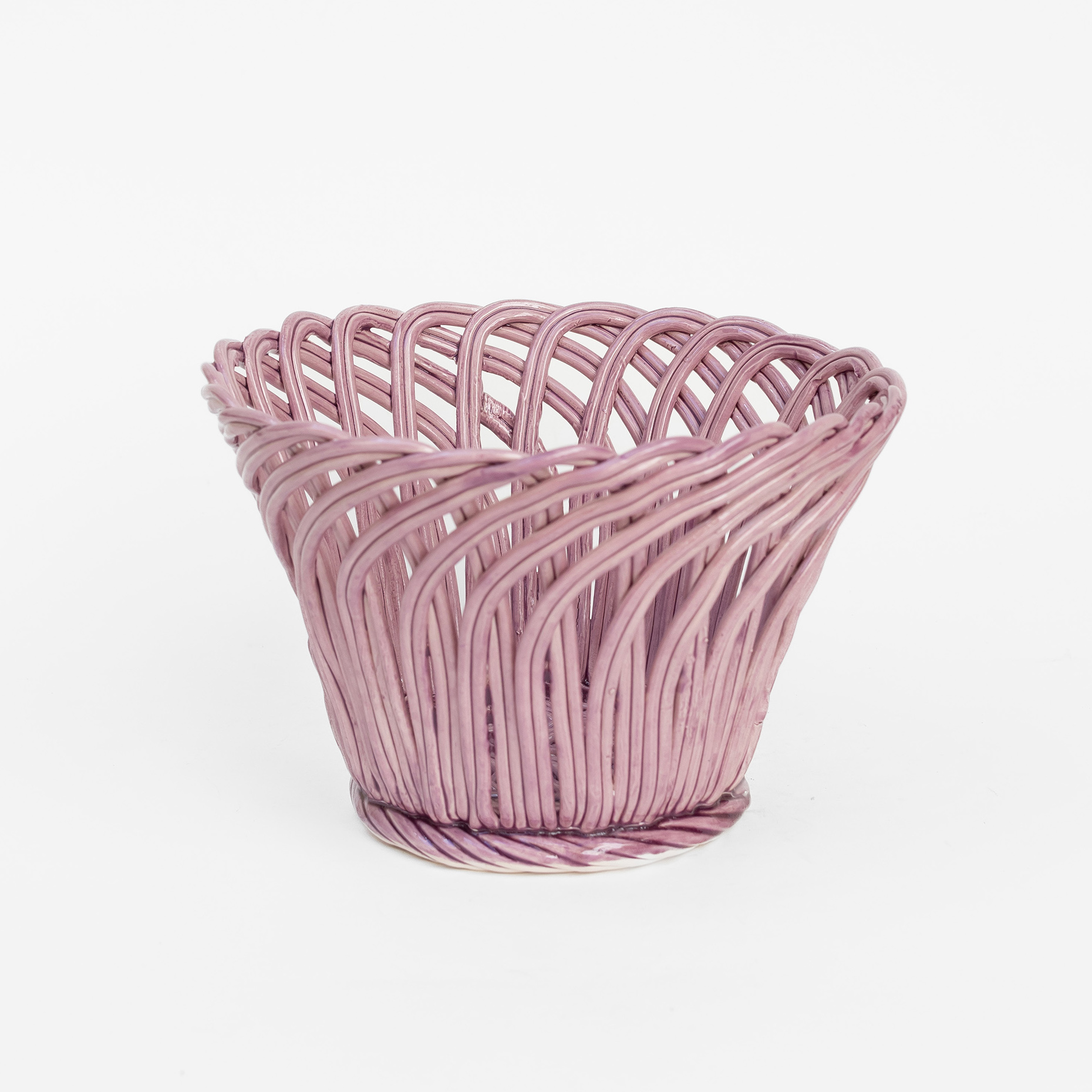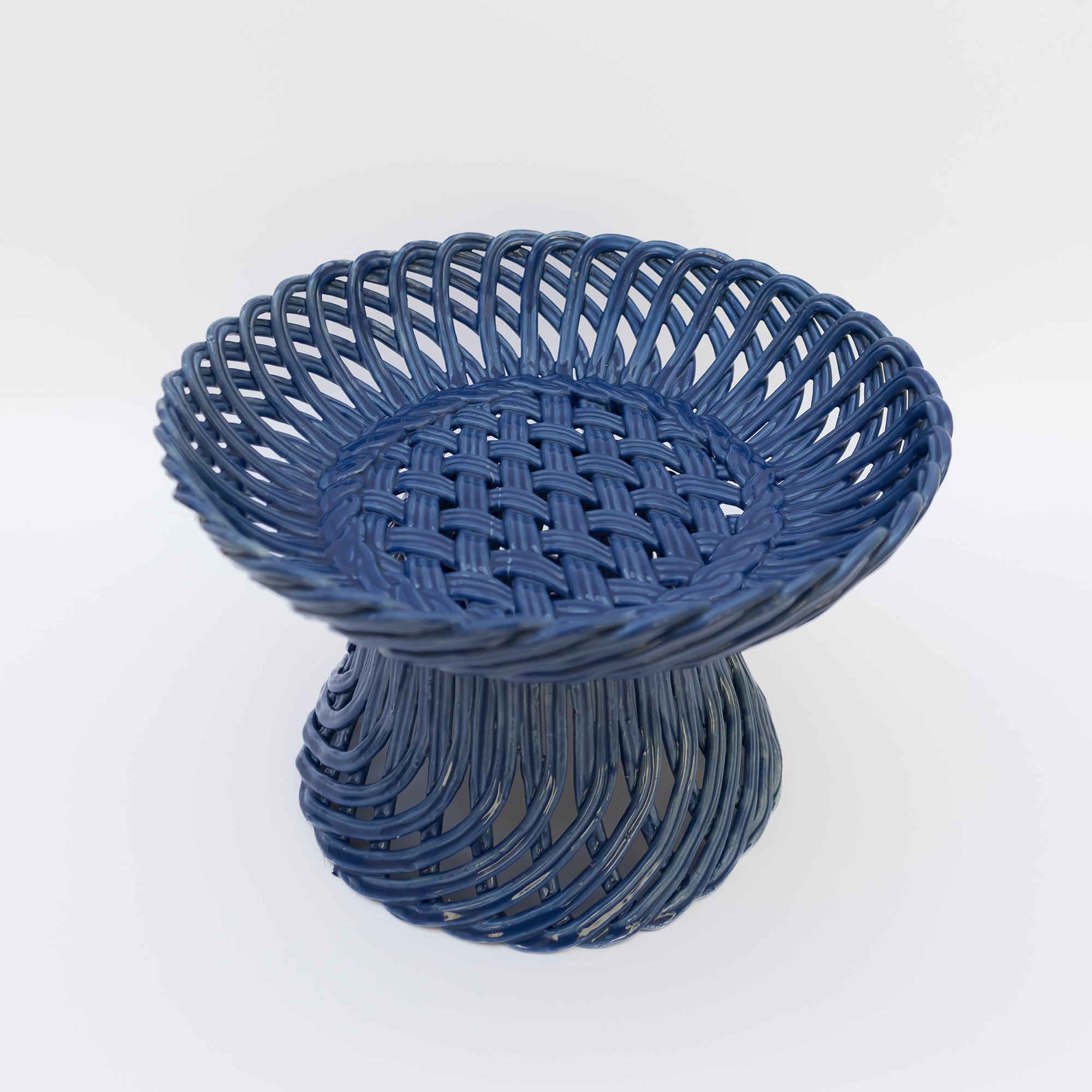 Cestas de cerâmica comissionadas por Felipa Almeida na técnica da verguinha que consiste em produzir a peça com rolinhos de barro entrelaçados, que depois são vidrados.
