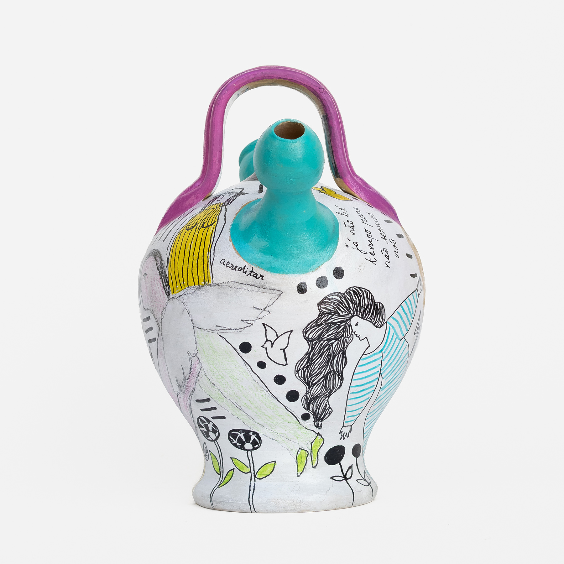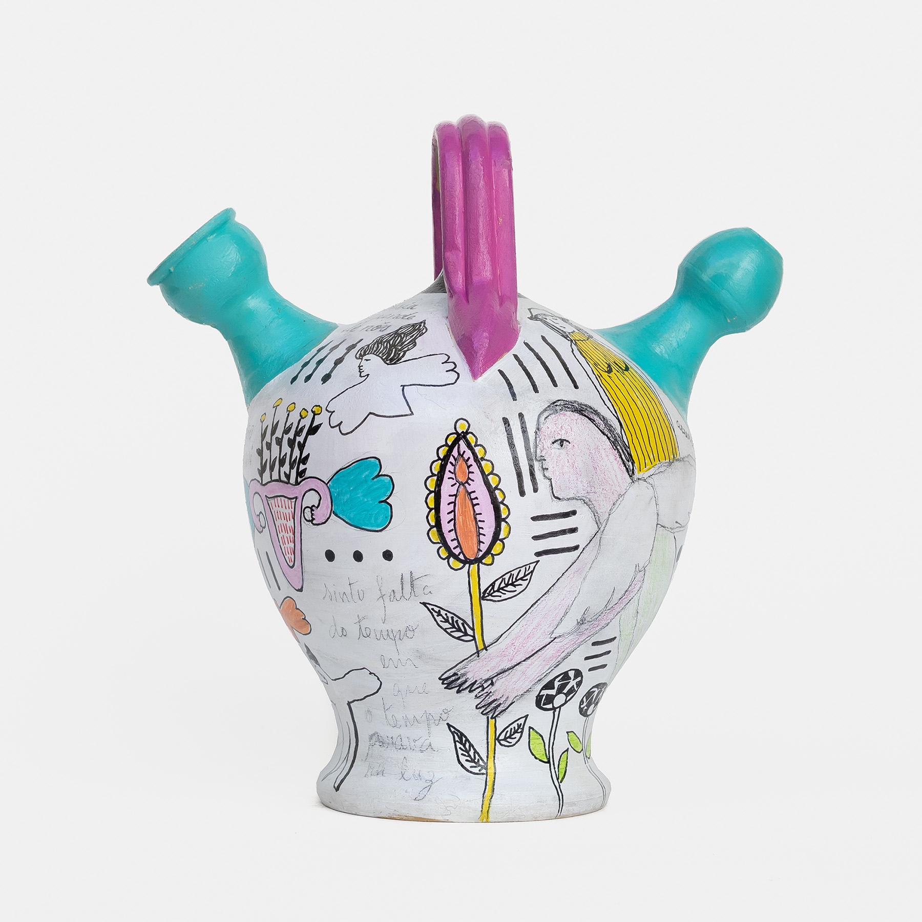 Moringue em cerâmica de Cláudia R. Sampaio, comissariado por Felipa Almeida para a exposição Moringue vazio não carrega só vento, na Galeria Plato em Évora, Junho 2025.