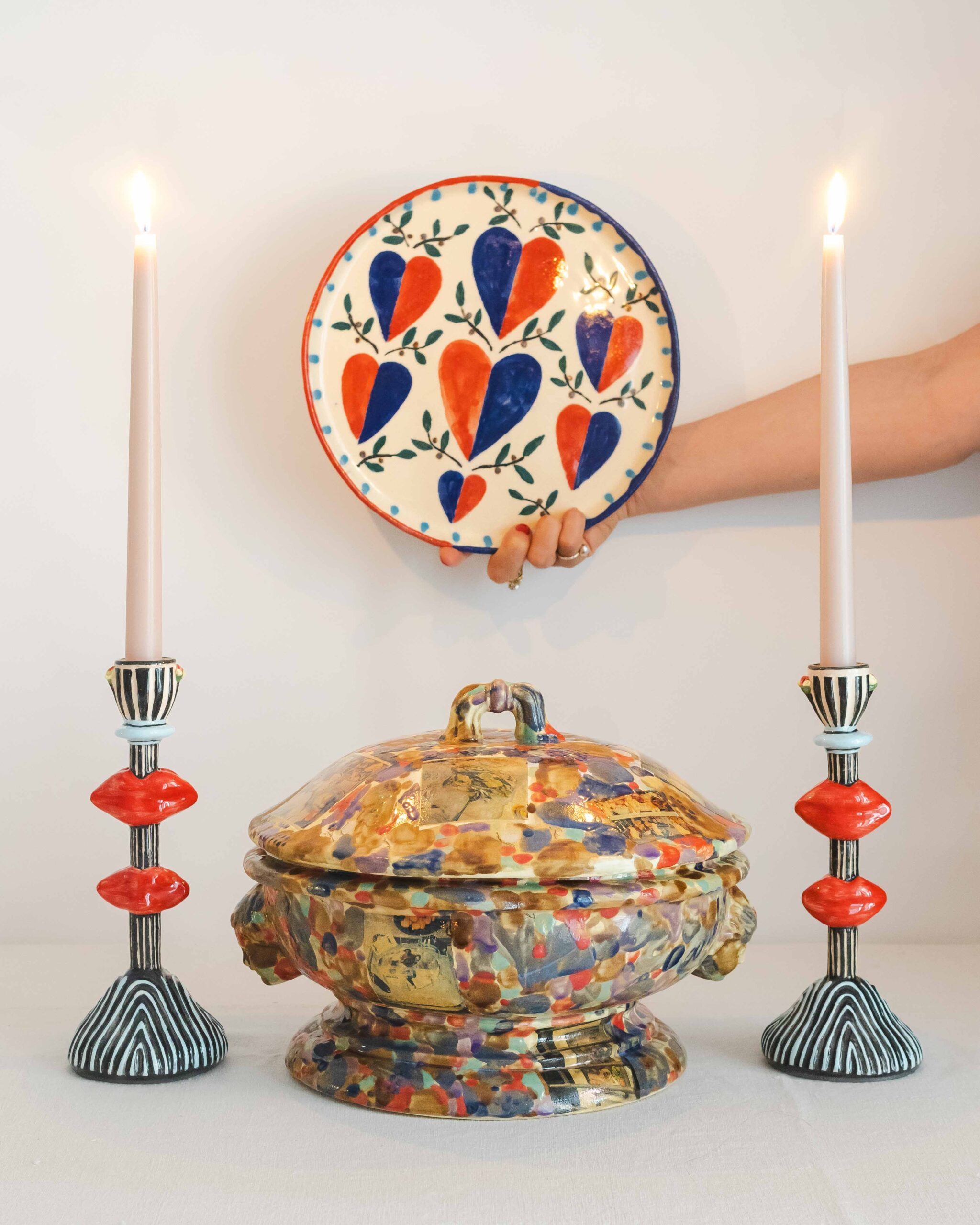 Da homenagem ao bordado de Castelo Branco pelas mãos da Catarina Tudela às peças em madeira do Mal Barbado, inspiradas na arte pastoril; das tapeçarias da Fantasque aos espelhos moldados em cerâmica por Maud Téphany e por Marta Cypel; e das serigrafias da Henriette Arcelin às chacotas da Viúva Lamego pintadas por Rúben Carrilo e por Alexandre da Silva, a Feira dos Amores revela-se como um coro múltiplo, inesperado e vivo, sobre aquilo que nos move.